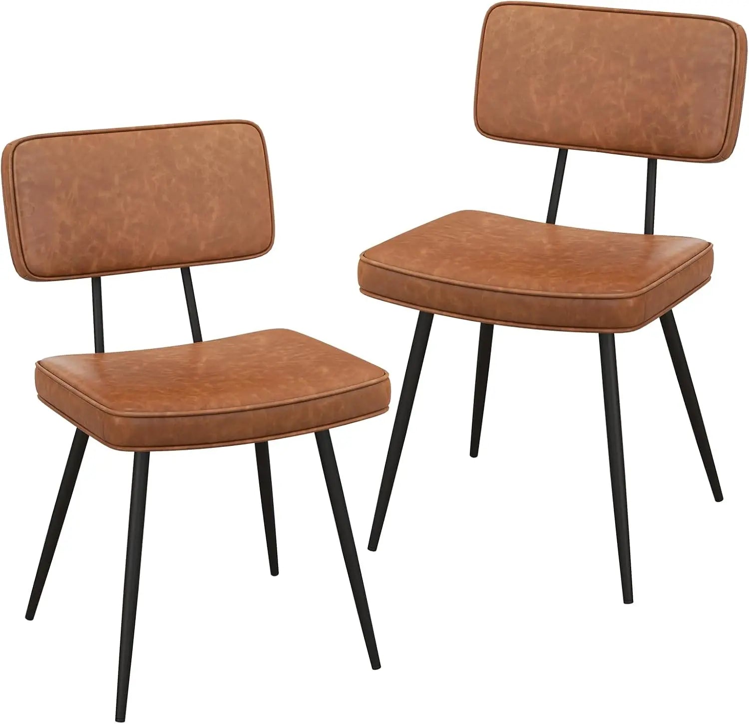 Set of 2 Modern Dining Chairs – Brown PU Leather Upholstery