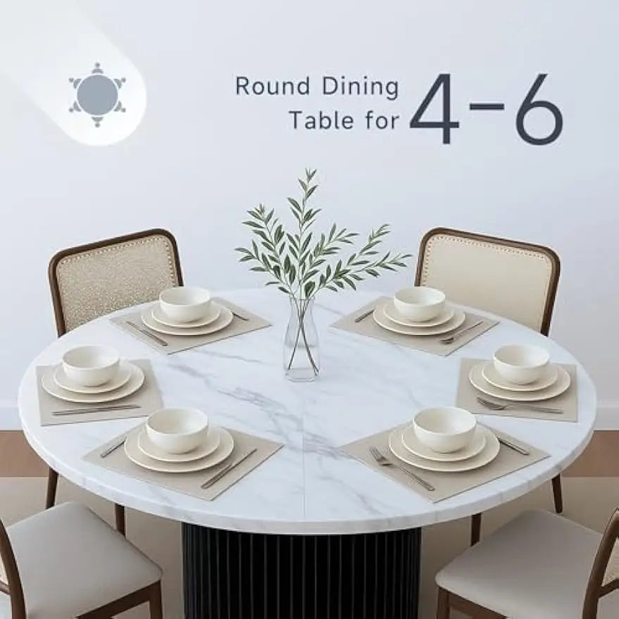 Enhance your dining space with this elegant round dining table, designed for both style and functionality. The 110 cm circular tabletop comfortably seats 4–6 people, making it perfect for family meals, casual gatherings, or as a versatile coffee or guest table.