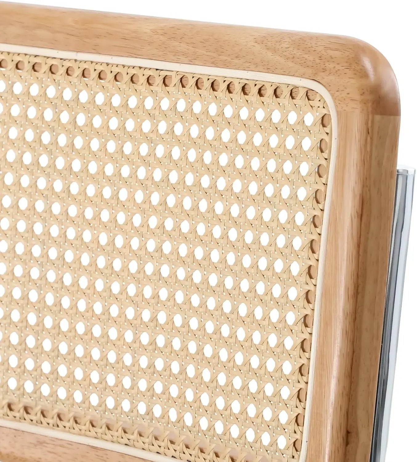 These chairs are designed for a comfortable and luxurious seating experience. They feature plush PU leather seats and a distinct backrest woven with PE rattan, adding a natural yet modern textural contrast. The easy-to-clean PU leather and PE rattan ensure the chairs are designed to withstand the demands of daily use while maintaining their attractive appearance.